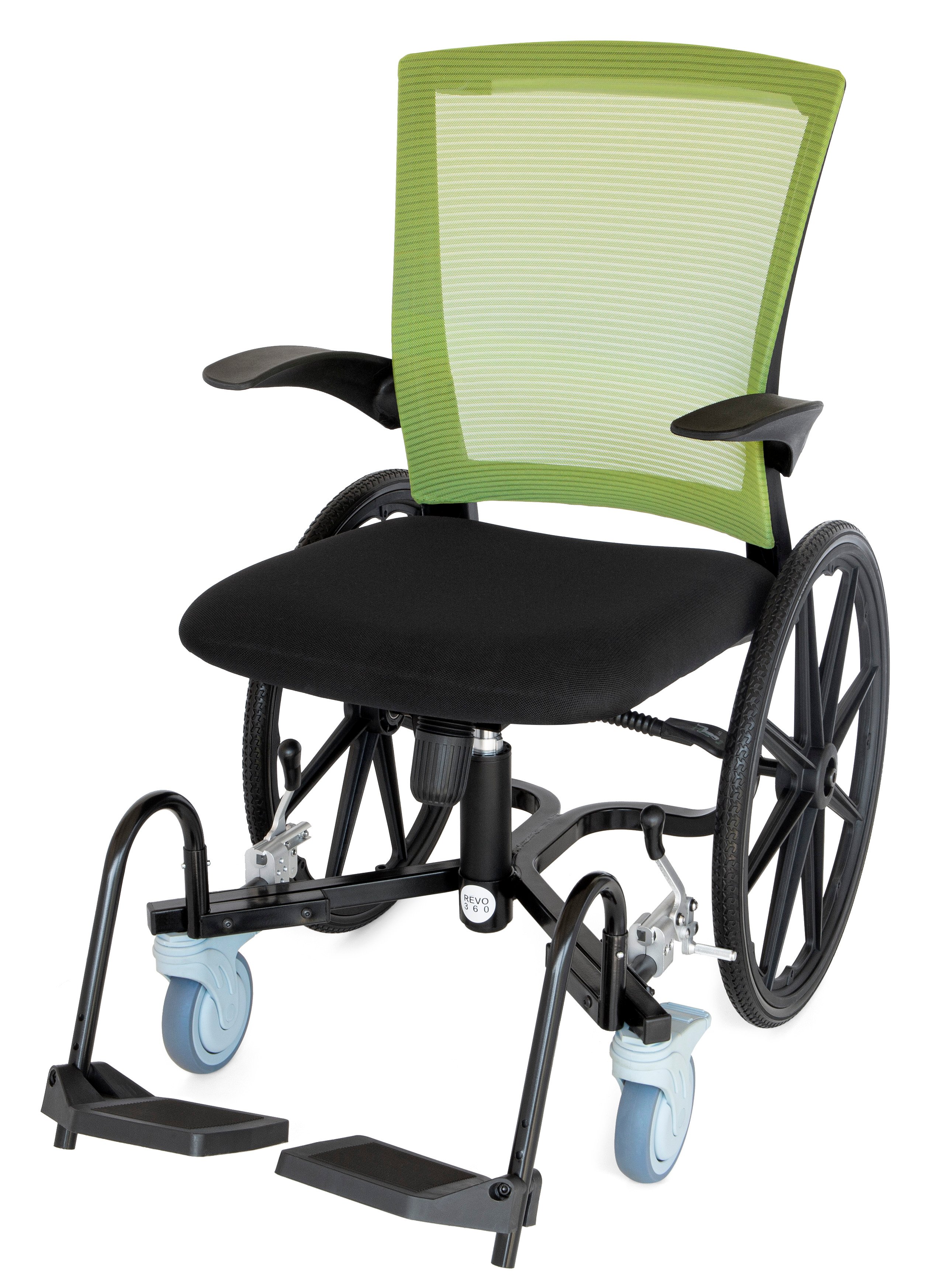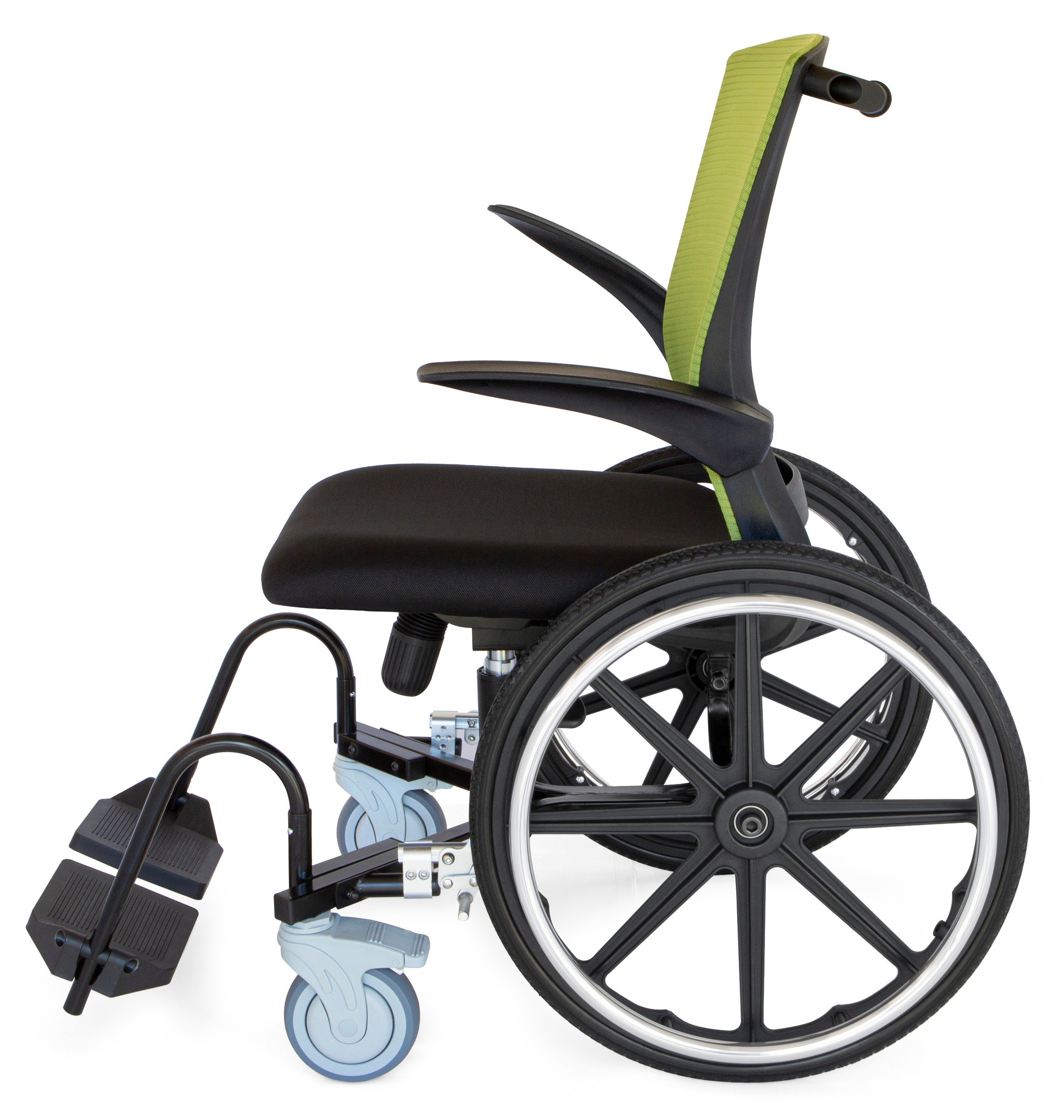 • Flip-up armrests for easy transfers and won't interfere when seated at a table